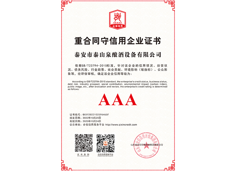 泰安市泰山泉釀酒設(shè)備有限公司,是一家專(zhuān)業(yè)從事釀酒設(shè)備機(jī)械化研發(fā)并集技術(shù)咨詢(xún),工程設(shè)計(jì),制造安裝,人員培訓(xùn)及售后服務(wù)為一體的綜合性企業(yè),本公司主要產(chǎn)品為:大曲清香、小曲清香、大曲醬香、大曲濃香等香型白酒機(jī)械化設(shè)備?! ”竟九c中國(guó)科學(xué)院自動(dòng)化研究所簽訂技術(shù)服務(wù)合同,引進(jìn)先進(jìn)技術(shù),研究生產(chǎn)全自動(dòng)化機(jī)械釀酒設(shè)備,由中國(guó)科學(xué)自動(dòng)化研究所的技術(shù)支持,打造最先進(jìn)的生產(chǎn)釀酒設(shè)備,公司有信心打造全國(guó)最先進(jìn)白酒...